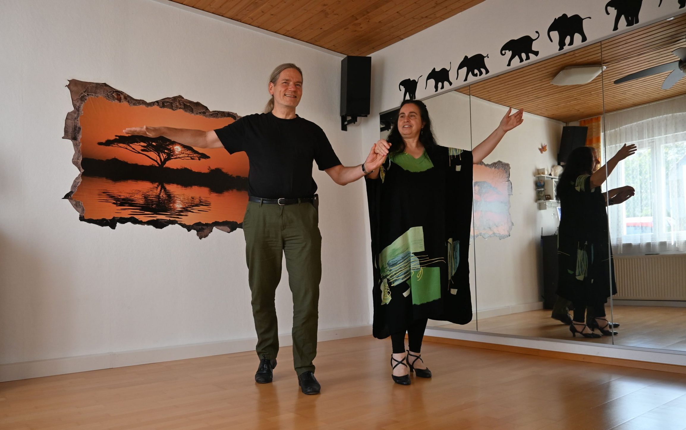 Vertrauensvoll legt sie sich in seine Arme, gibt sich den Klängen und ihren Emotionen hin, ist ganz im Moment. Der schönste Raum im Elefantenhaus sei der Tanzraum, sagen die beiden. Er ist professionell ausgestattet mit Schwingboden, Deckenventilator und Spiegelwand. Und mit großen Fenstern, durch die die Sonne hell und warm hereinscheint – und das Glück heraus.